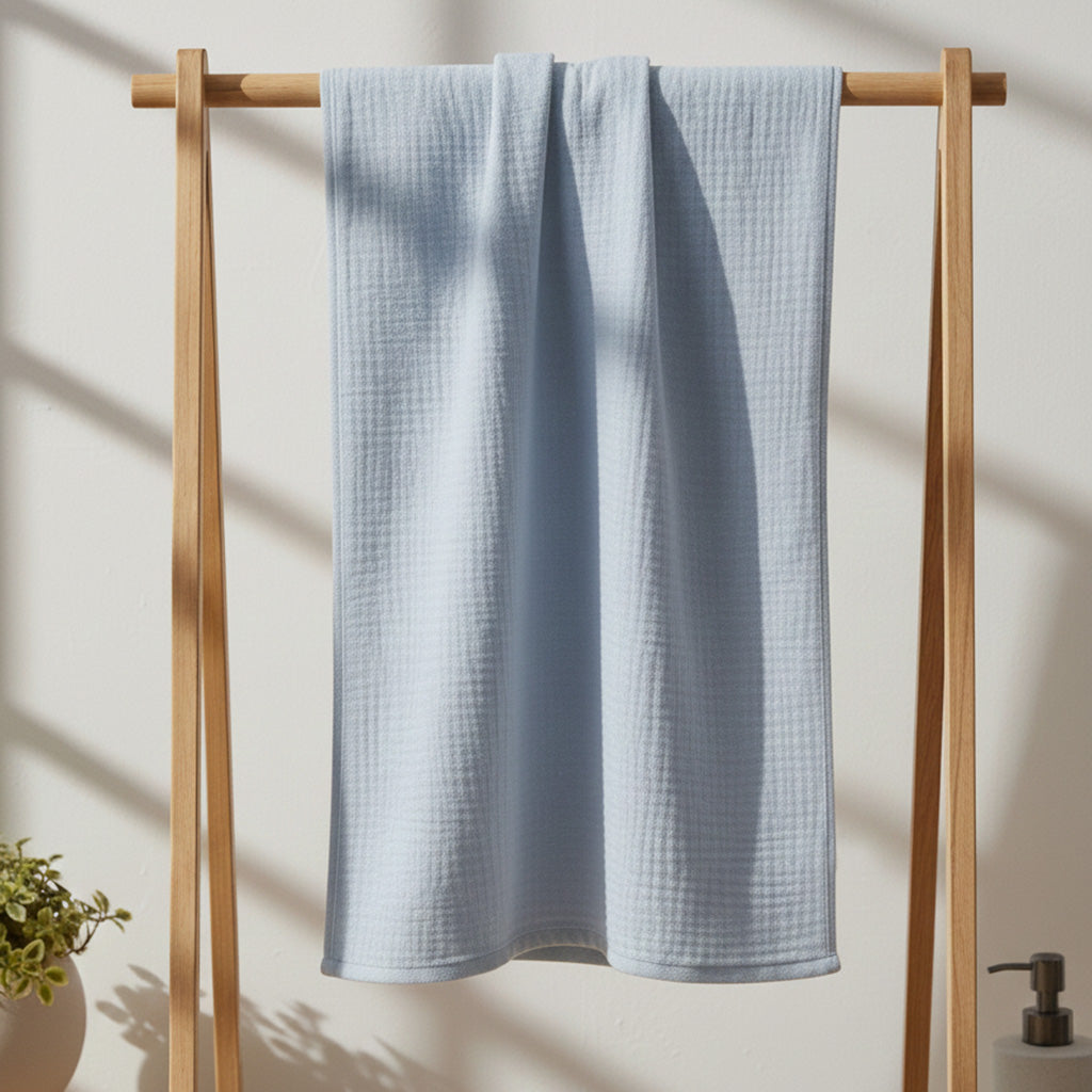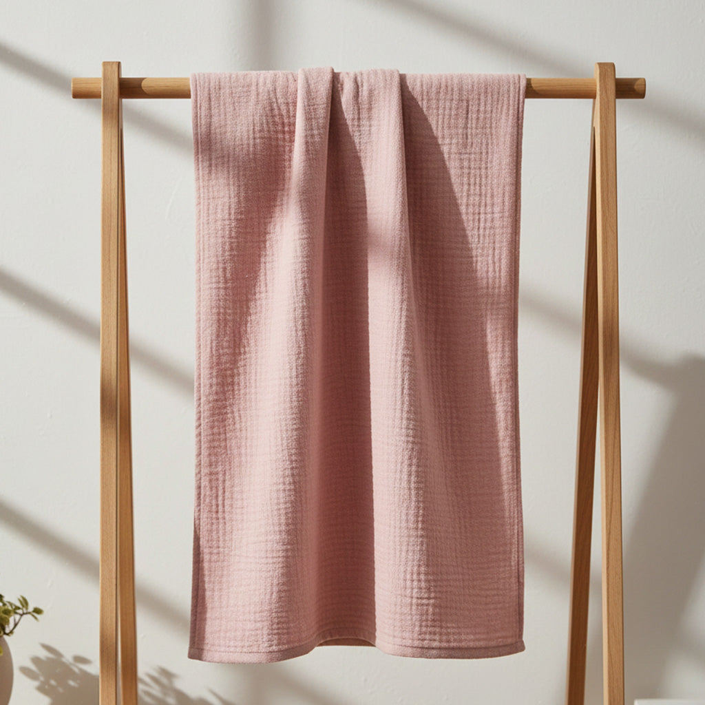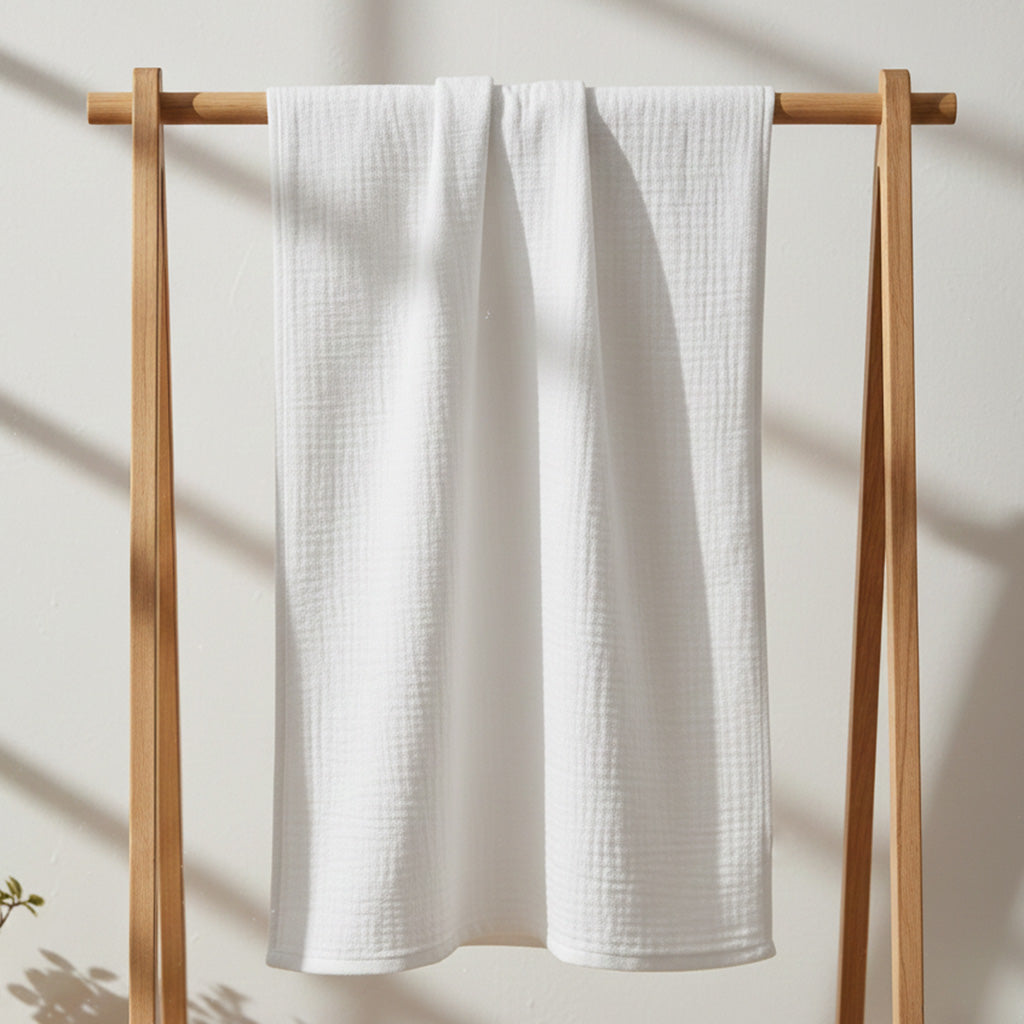 La doppia garza di cotone è naturalmente assorbente e a rapida asciugatura, ideale nelle stagioni calde e per chi cerca un tessuto leggero, traspirante e pratico.