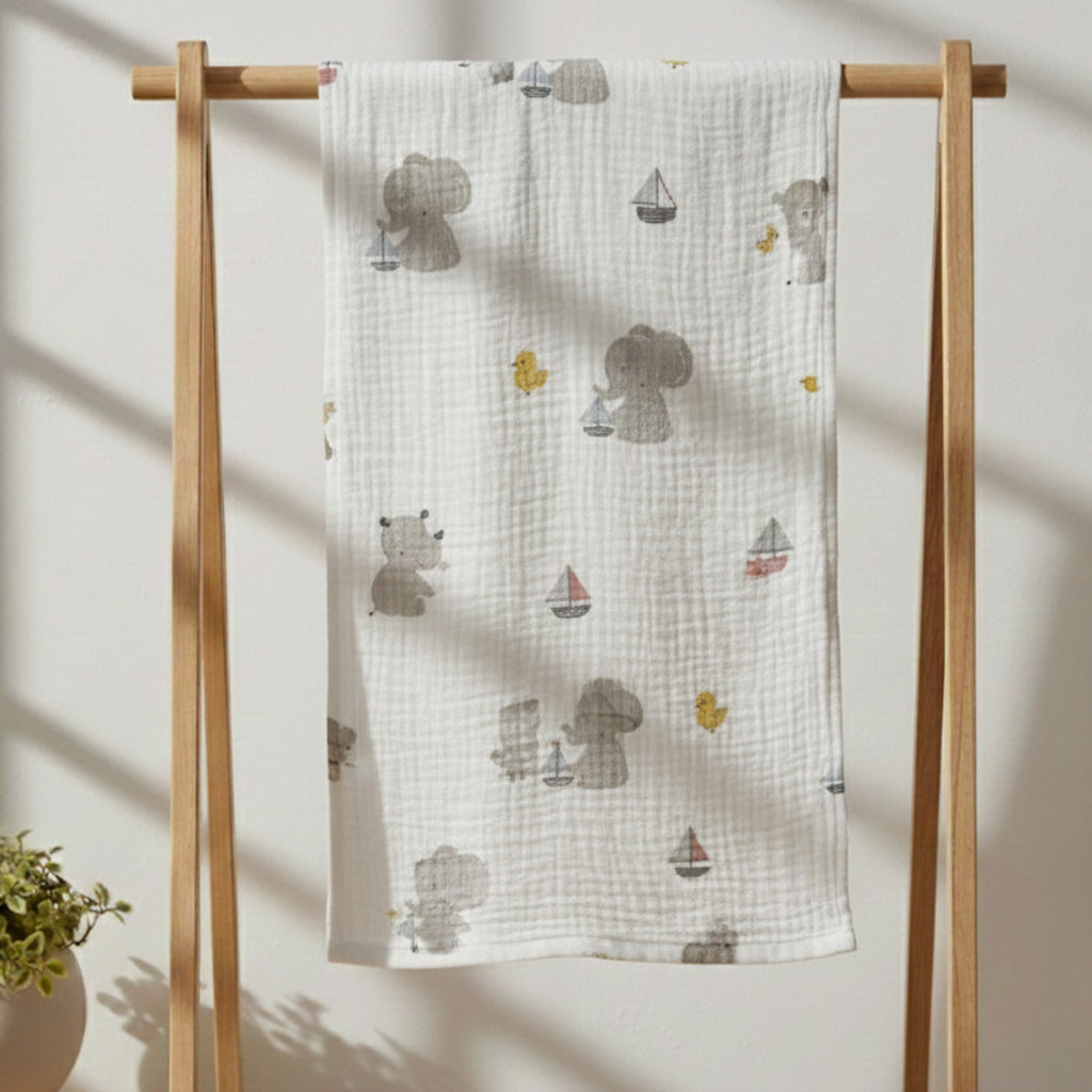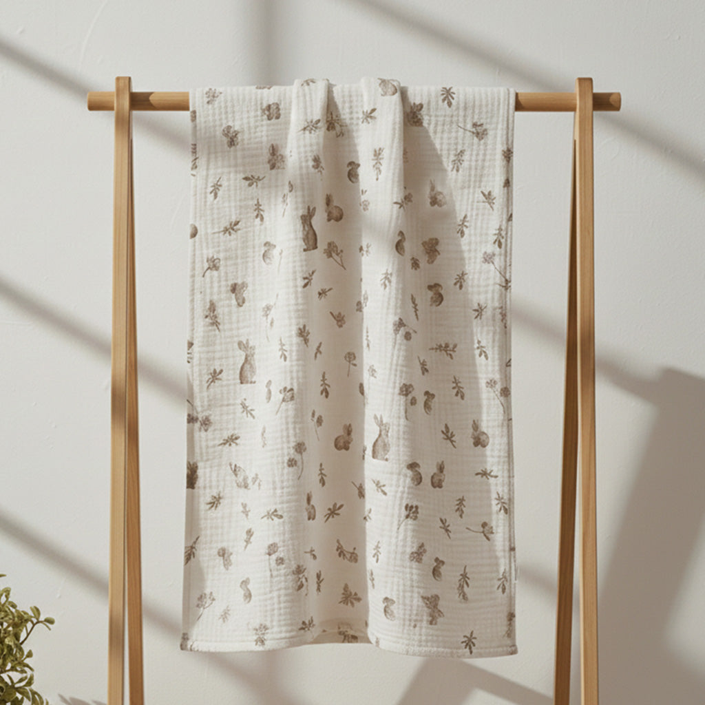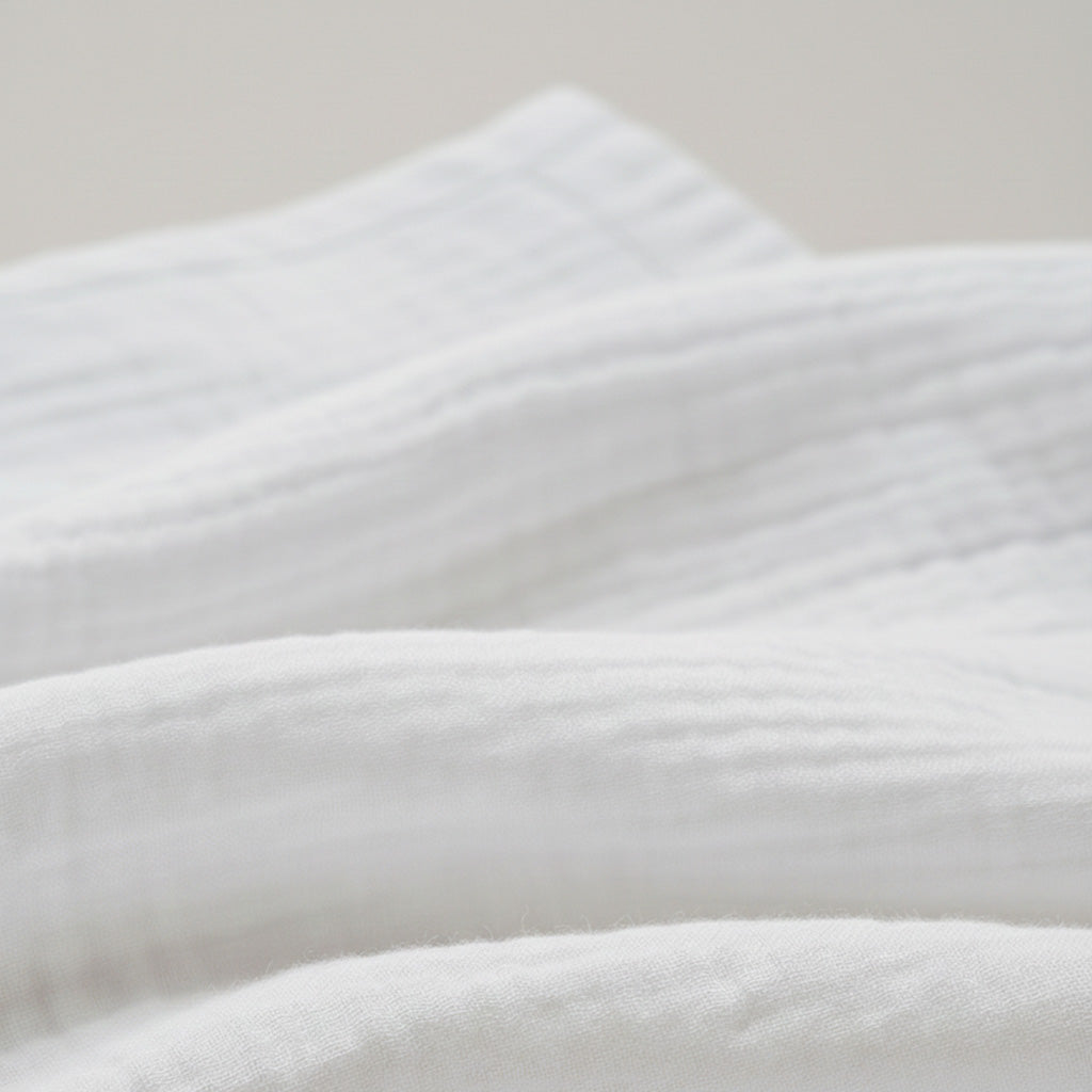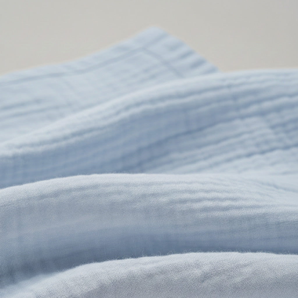 La nostra mussola in doppia garza di cotone 100% certificato OEKO-TEX® è pensata per accompagnare mamme e bambini in ogni momento della giornata, fin dalla nascita.